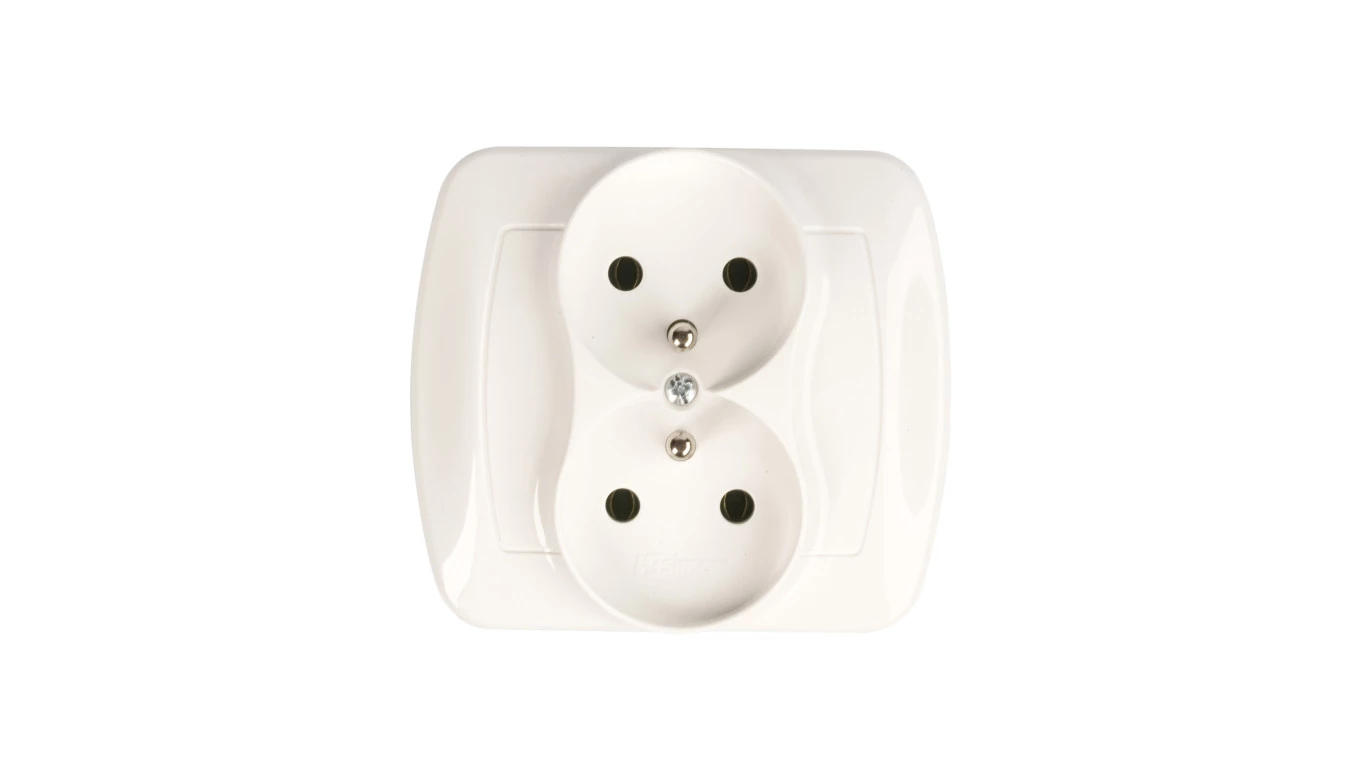 Simon 54 Gniazdo podwójne z/u 16A IP20 z przesłoną torów białe DGZ2MZ.01/11