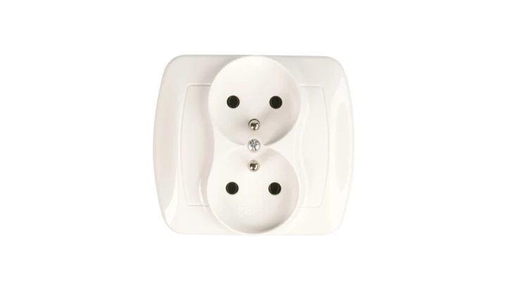 KARO Gniazdo podwójne b/u z przesłonami białe GP-2SRP/m/00