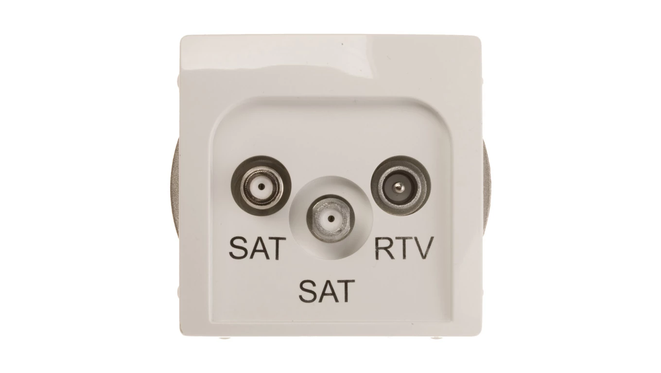 Simon 10 Gniazdo antenowe końcowe RTV-DATA. 1xwejście: 5÷1000 MHz Wyjście 2x/F/ (DATA: 5÷1000 MHz) (RTV:88÷1000 MHz) białe CAD1.