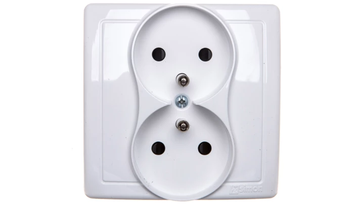 SUNO Gniazdo podwójne 2x2P+Z 16A 250V białe zaciski automatyczne z przesłoną 721190