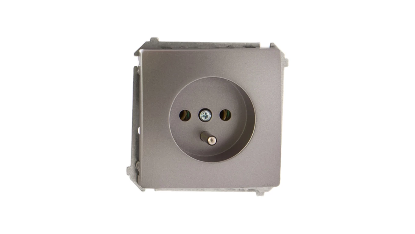 Simon 54 Gniazdo pojedyncze z/u 16A IP20 z przesłoną torów srebrny mat DGZ1Z.01/43