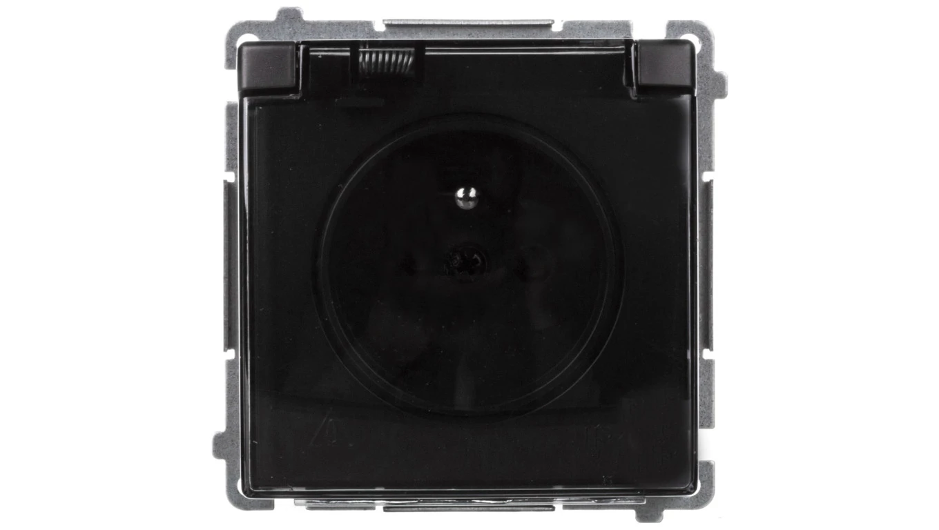 Simon 55 Gniazdo Schuko IP44 z przesłonami z uszczelką(moduł), szybkozłącza. Klapka transparentna Czarny mat TGSZ1BCZ.01/149A