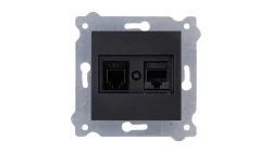 Gniazdo komputerowe kat.6 + gniazdo telefoniczne Czarny Metalik 256/14E EXEN