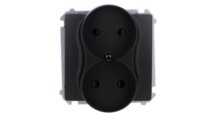 Simon 54 Gniazdo wtyczkowe b/u z przesł. podwójne (moduł) 16A 250V zaciski śrub. czarny mat do ramek S54 PREMIUM DG2MZ.01/49