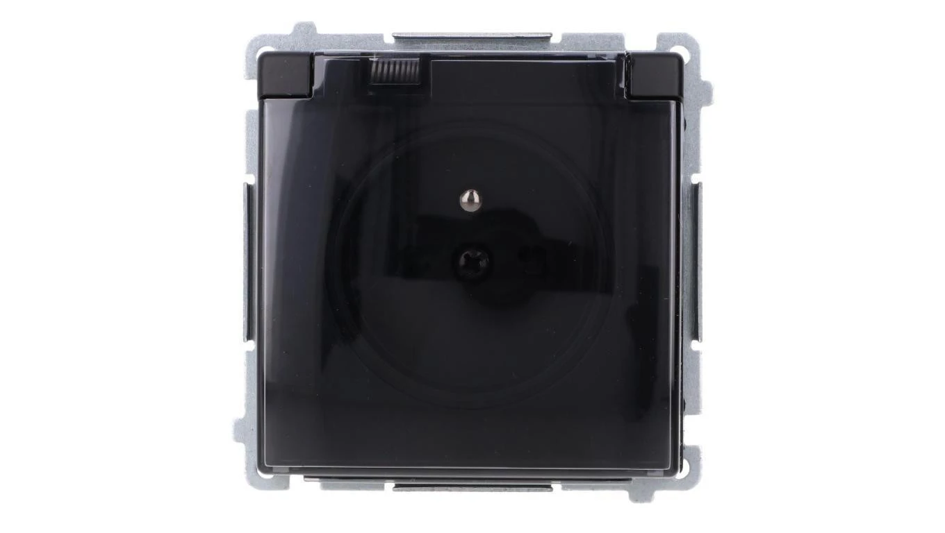 Simon 54 Gniazdo do wersji IP44 z usz. (moduł) 16A 250V klapka transparentna czarny mat usz. do ramek S54 PREMIUM DGZ1BZ.01/49A