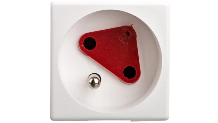 Gniazdo modułowe 230V z uziemieniem 1-krotne std 45x45, z blokadą i zwalniaczem, czerwone E/GMBZ