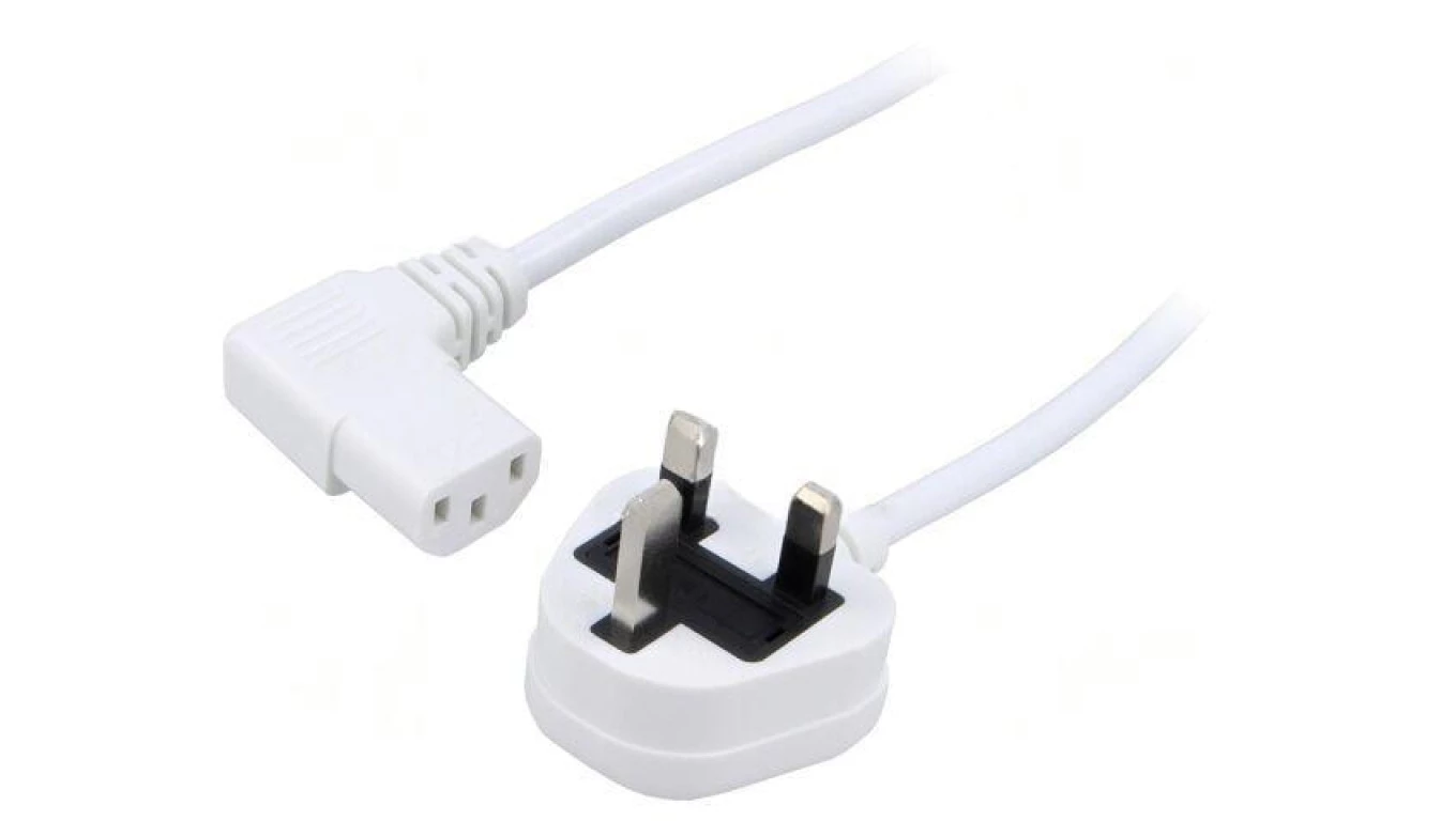 SN24-3/07/1.5WH Kabel: 3x0,75mm2, BS 1363 (G) wtyk,IEC C13 żeński kątowy prawy