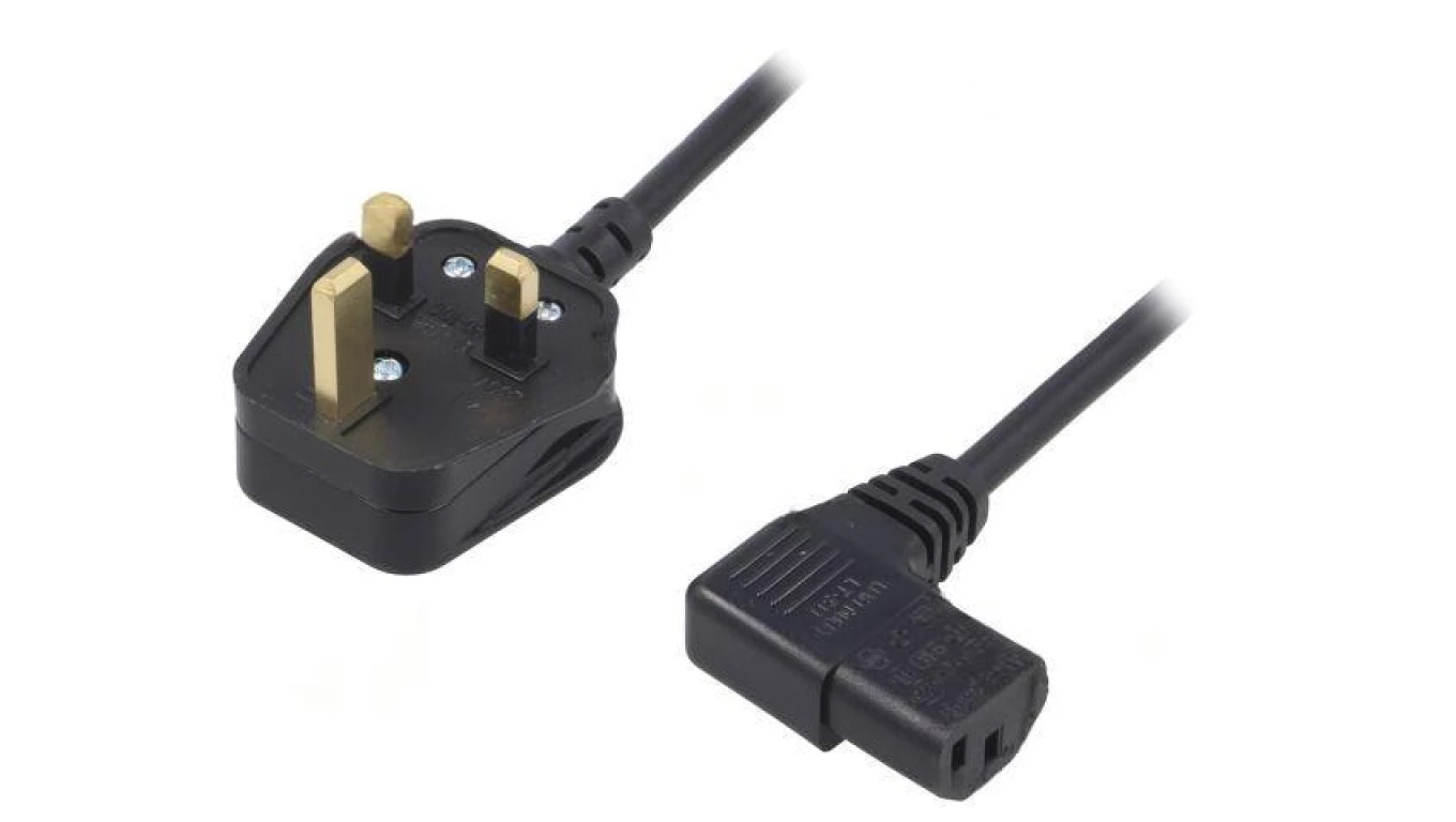 SN24-3/07/1.8BK Kabel: 3x0,75mm2, BS 1363 (G) wtyk,IEC C13 żeński kątowy prawy