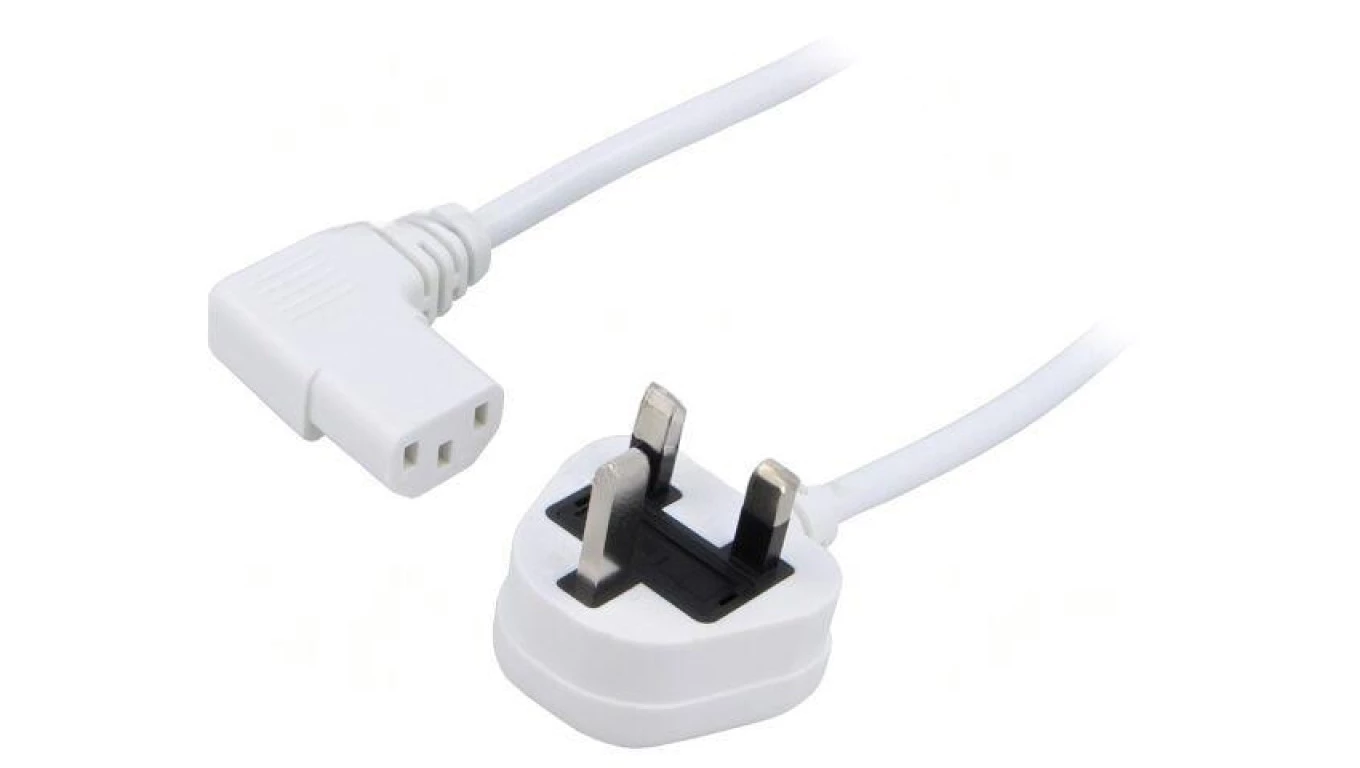 SN24-3/07/1.8WH Kabel: 3x0,75mm2, BS 1363 (G) wtyk,IEC C13 żeński kątowy prawy