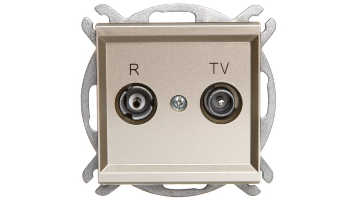 SONATA Gniazdo antenowe RTV przelotowe 10dB szampański złoty GPA-10RP/m/39