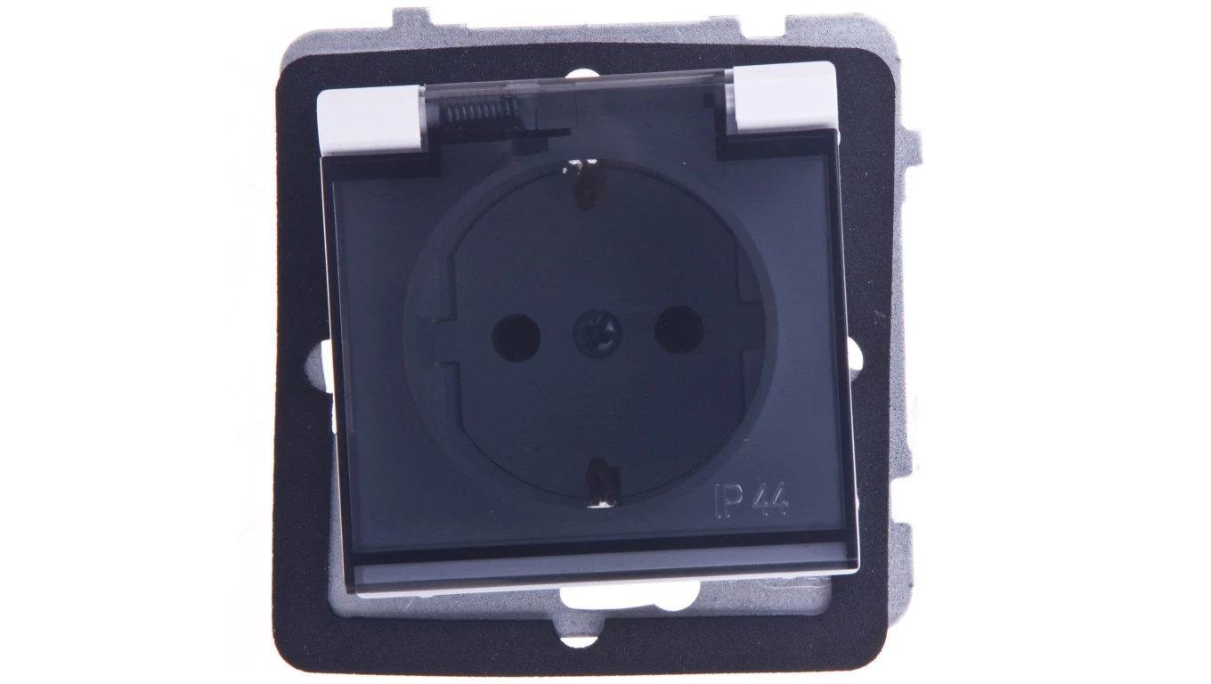 SONATA Gniazdo bryzgoszczelne z/u Schuko IP44 klapka przezroczysta białe GPH-1RS/m/00/d
