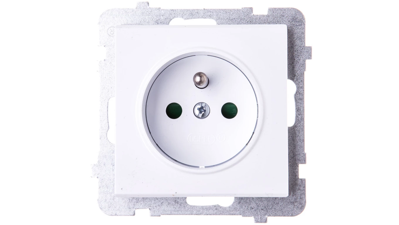 SONATA Gniazdo pojedyncze z uziemieniem z przesłonami torów prądowych biały mat GP-1RZP/m/75