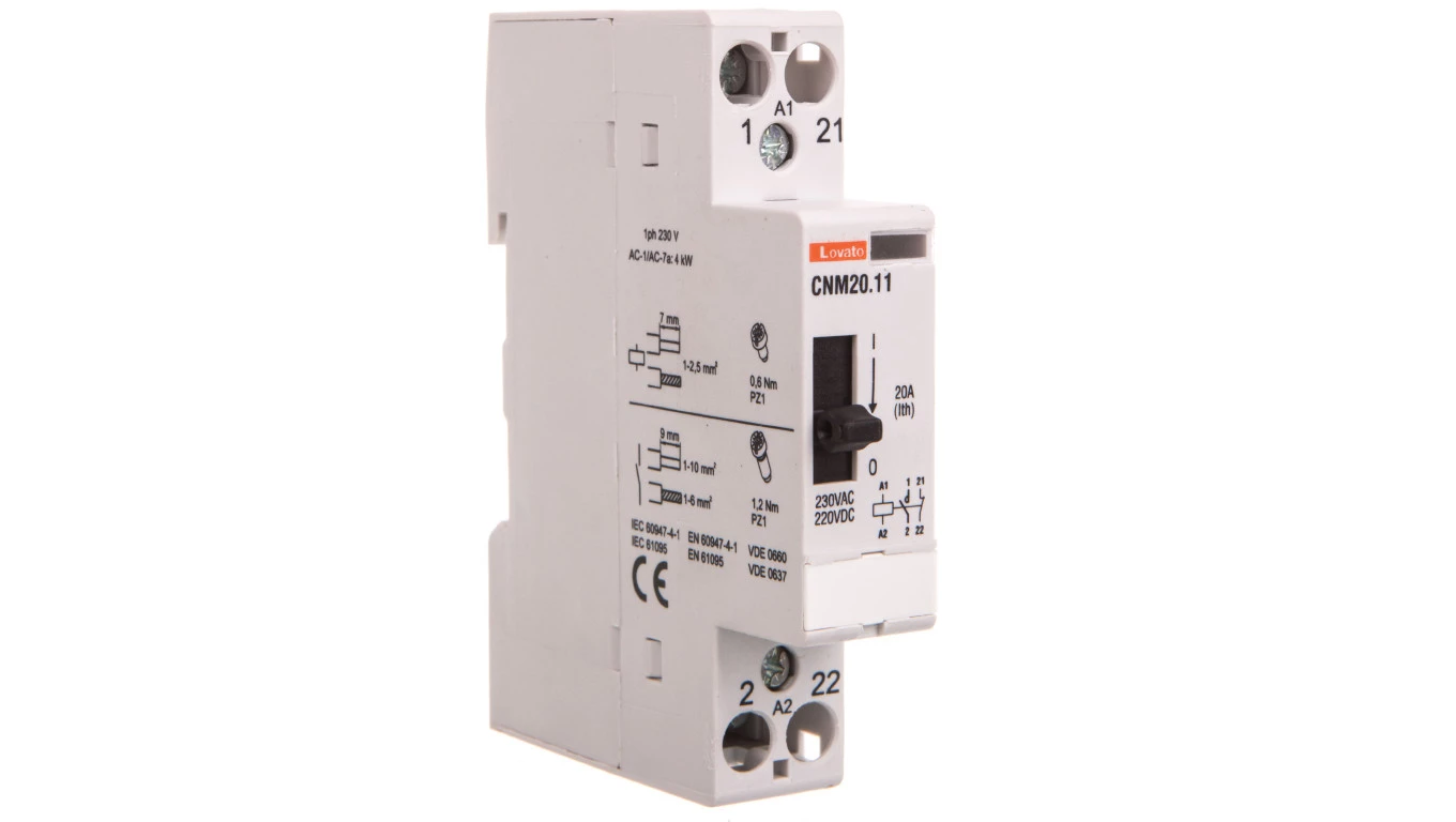 Stycznik modułowy z dźwignią do sterowania ręcznego 20A 1Z 1R cewka 220-230 VAC/DC CNM2011220