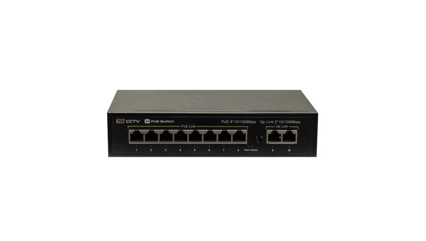 Switch 8x PoE 10/100 Mbps 802.3af/at + 2x Uplink 10/100 Mbps, 96W tryb Extend (250m)