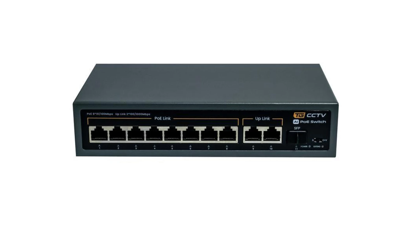 Switch 8x PoE 10/100 Mbps 802.3af/at + 2x Uplink 100/1000 Mbps + 1x SFP, 120W, tryb Extend (250m)
