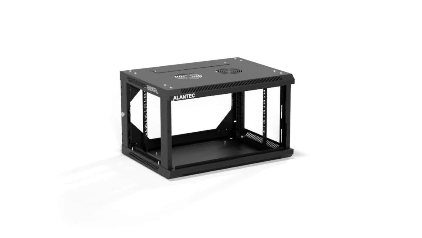 Szafa rack wisząca 19 cali 6U 600x450, drzwi szklane, tył i osłony boczne demontowalne, FLAT PACK kolor czarny ALANTEC