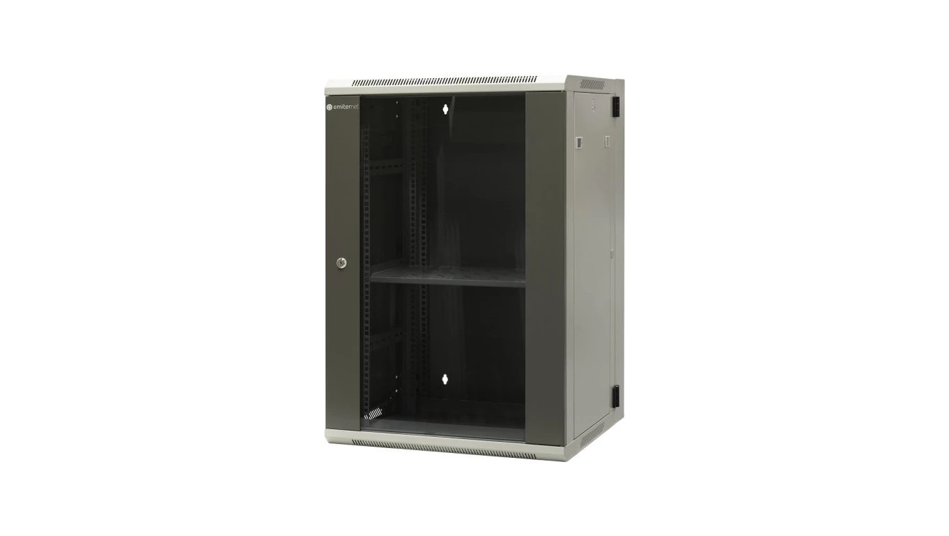 Szafa wisząca dzielona 19 18U, drzwi blacha/szkło,ściągane osłony boczne z zamkiem, tył zamek 600×550×910 szer./gł./wys. mm RA
