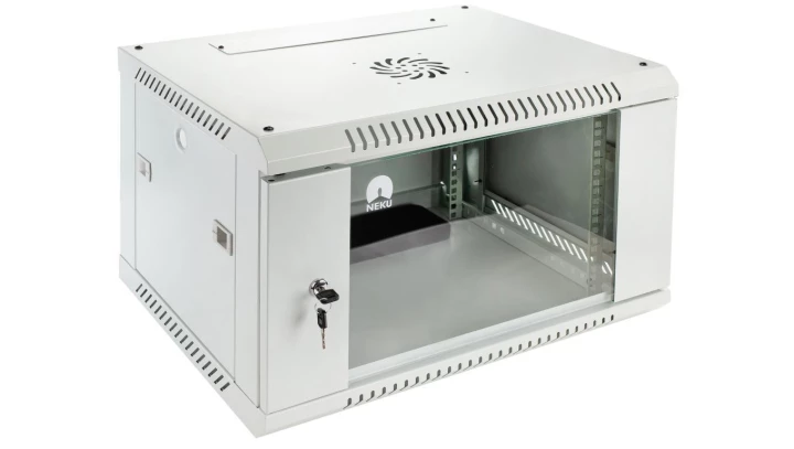 Szafa wisząca RACK 19 6U 350mm drzwi szklane szara NEKU TS BOX