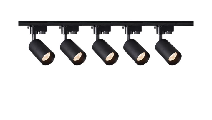 Szynoprzewód 2m czarny + 5x Lampa MALGA T Black + Końcówka zasilająca czarna + Zaślepka czarna