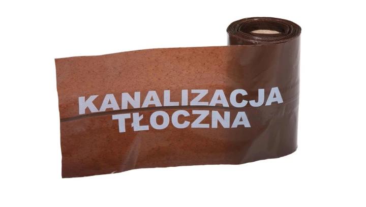 Taśma ostrzegawcza oznaczeniowa brązowa szer. 20 cm nadruk Uwaga Kanalizacja /100m