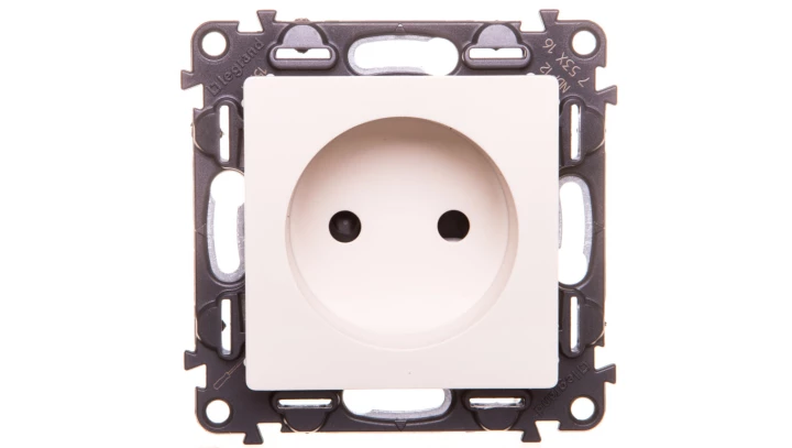 Simon 54 Gniazdo pojedyncze b/u 16A IP20 z przesłoną torów kremowe DG1Z.01/41