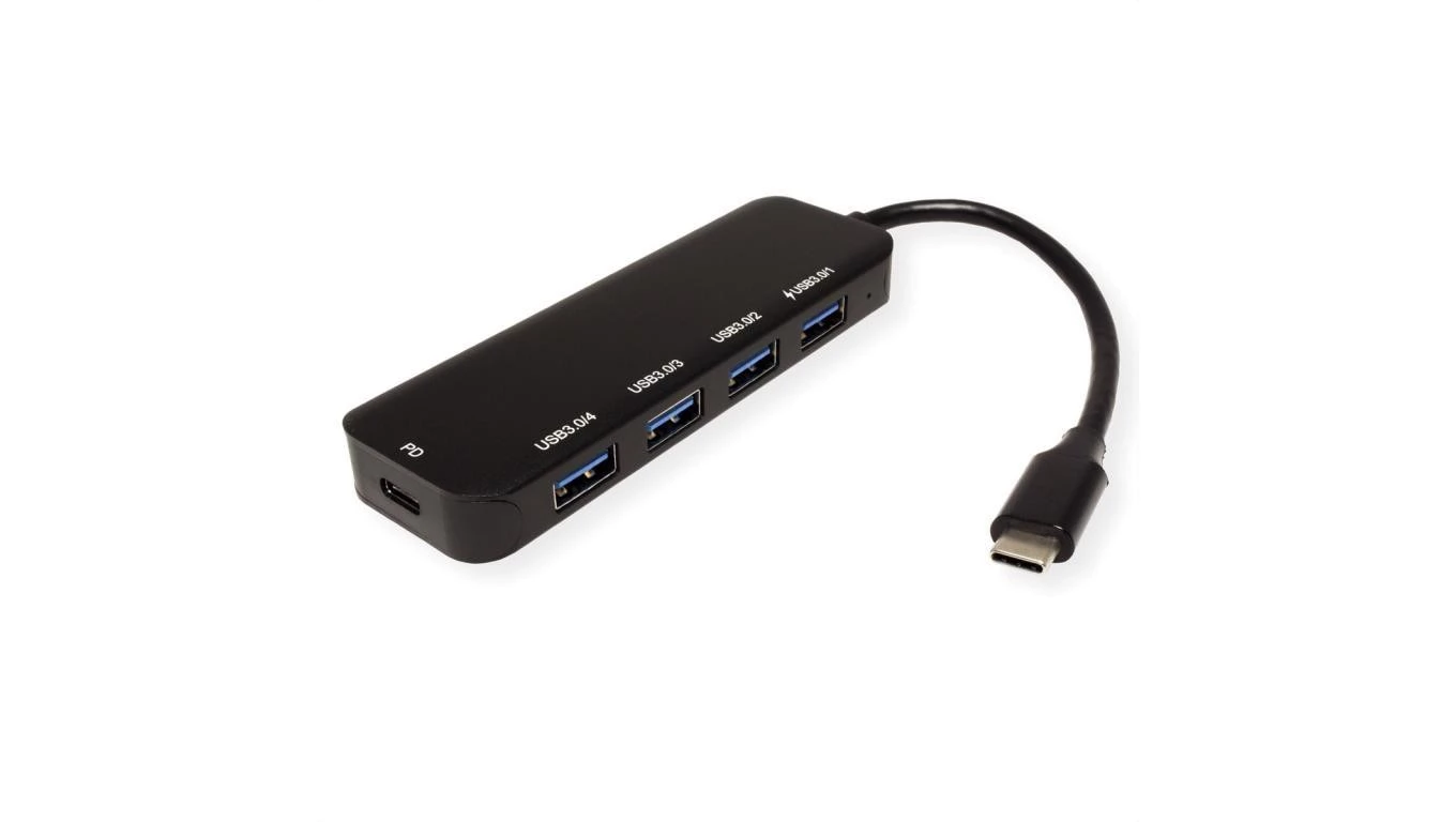 VALUE Hub USB 3.2 Gen 1, 4-portowy, kabel połączeniowy typu C, z 1 portem PD