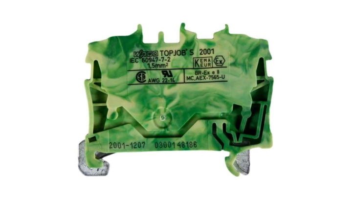 WAGO TOPJOBS 2001-1207 Złączka szynowa 2-przewodowa 1,5mm2 na szynę TH35 żółto-zielona