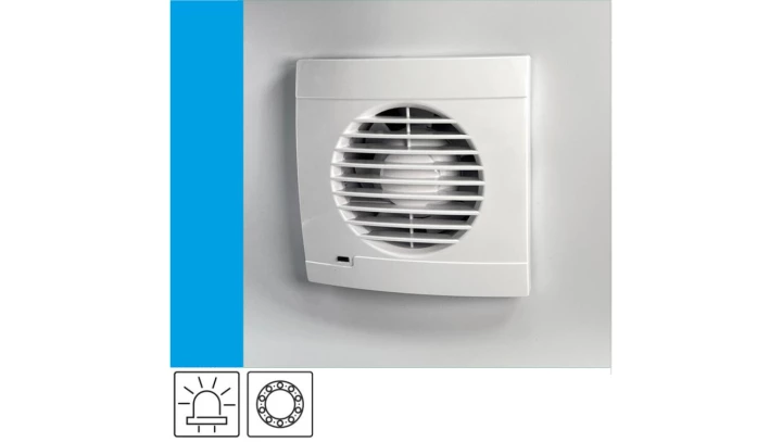 Wentylator domowy Aero VS100HT+ czujnik wilgoci i z opóźnieniem czasowym, kontrolka LED, klapka zwrotna, fi 100 mm, kolor biały