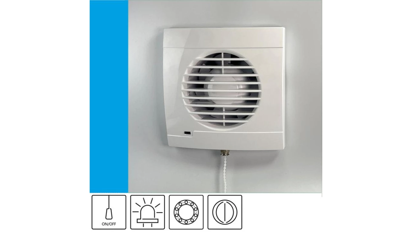 Wentylator domowy Aero RK100P+ kontrolka LED, klapka zwrotna, przełącznik pociągany, łożysko kulkowe, fi 100 mm, kolor biały