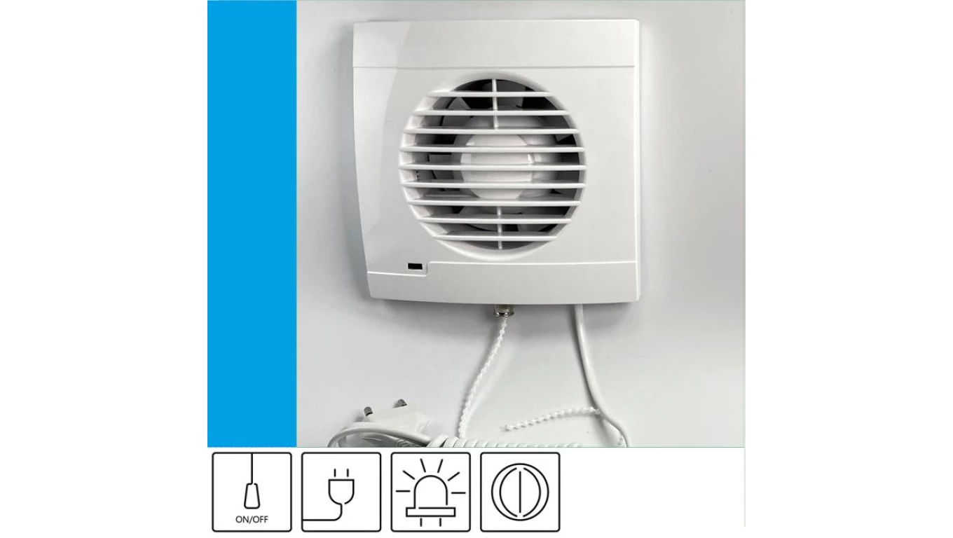 Wentylator domowy Aero RS100+ kontrolka LED, klapka zwrotna, przewód z wtyczką, fi 100 mm, kolor biały