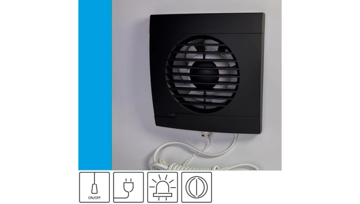 Wentylator domowy Aero RS100+ Onyx klapka zwrotna, przewód z wtyczką, kontrolka LED, fi 100 mm, kolor czarny
