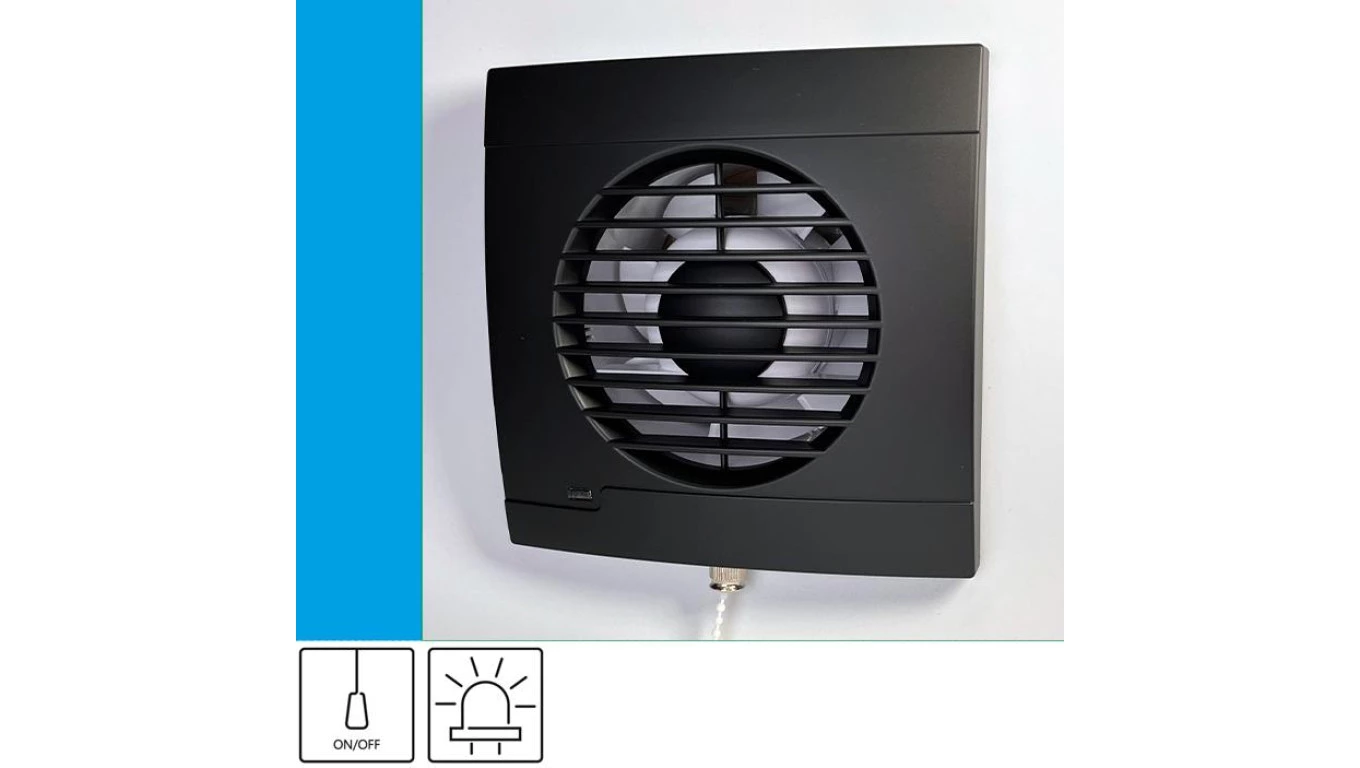 Wentylator domowy Aero RS100P Onyx przełącznik pociągany, kontrolka LED, fi 100 mm, kolor czarny