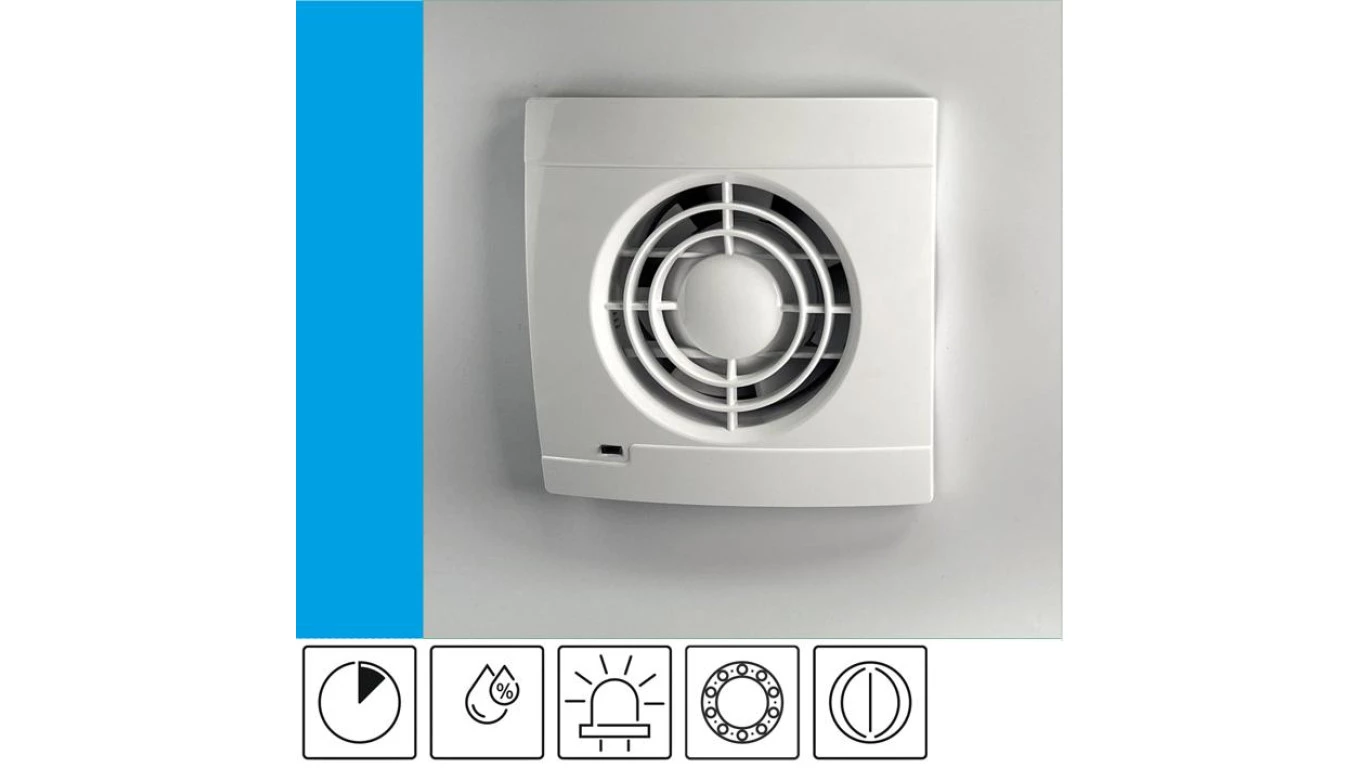 Wentylator domowy Aero VK100HT+ czujnik wilgoci i timer, kontrolka LED, klapka zwrotna, łożysko kulkowe, fi 100 mm, kolor biały