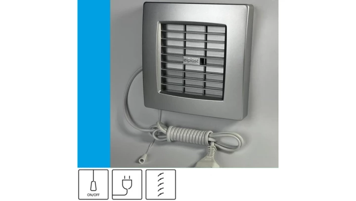Wentylator domowy Atol 100ASF przewód z wtyczką, automatyczna żaluzja, fi 100 mm, kolor srebrny