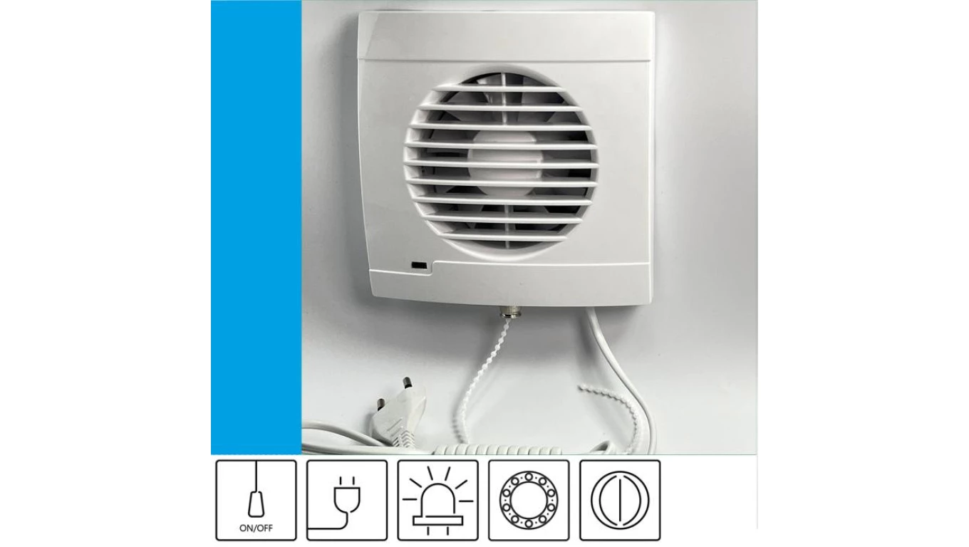 Wentylator domowy Vulkan RK100+ klapka zwrotna, przewód z wtyczką, łożysko kulkowe, kontrolka LED, fi 100 mm, kolor biały