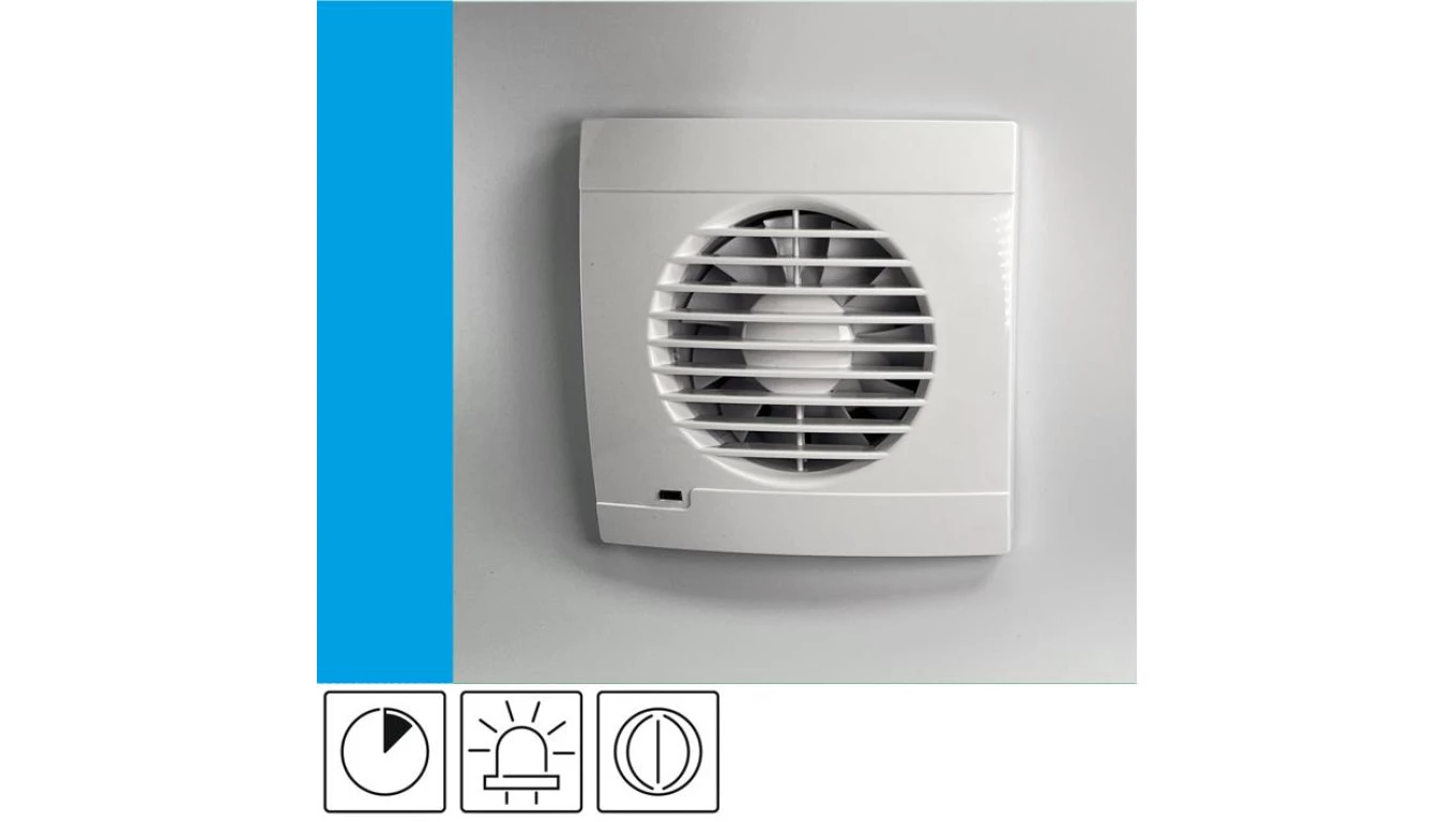 Wentylator domowy Vulkan RS100T+ klapka zwrotna, wyłącznik czasowy, kontrolka LED, fi 100 mm, kolor biały