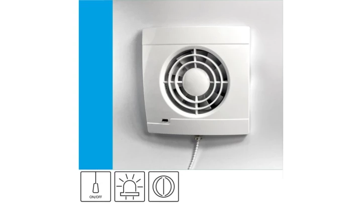 Wentylator domowy Vulkan VS100P+ klapka zwrotna, przełącznik pociągany, kontrolka LED, fi 100 mm, kolor biały