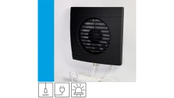 Wentylator domowy Vulkan RS100 Onyx przewód z wtyczką, kontrolka LED, fi 100 mm, kolor czarny