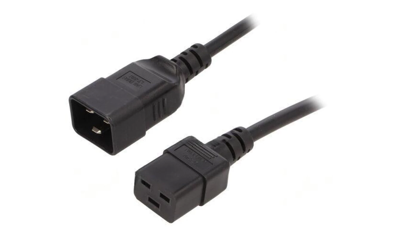 WN116-3/15/3BK Kabel: 3x1,5mm2, IEC C19 żeński kątowy,IEC C20 męski, 3m