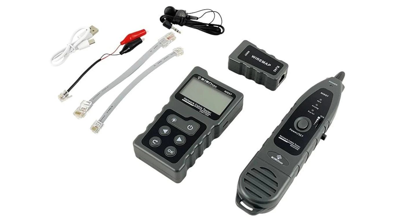 Wszechstronny tester kabli sieciowych z funkcjami PoE, śledzenia, pomiaru długości i testowania ciągłości z wyświetlaczem