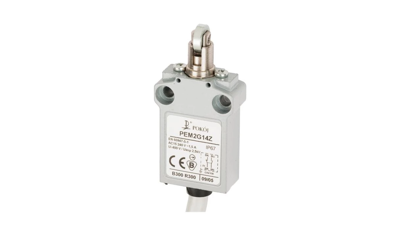 Wyłącznik krańcowy 1R 1Z migowy popychacz metalowy z rolką stalową prostopadłą Ø12 PEM2G14Z A37-B85Z