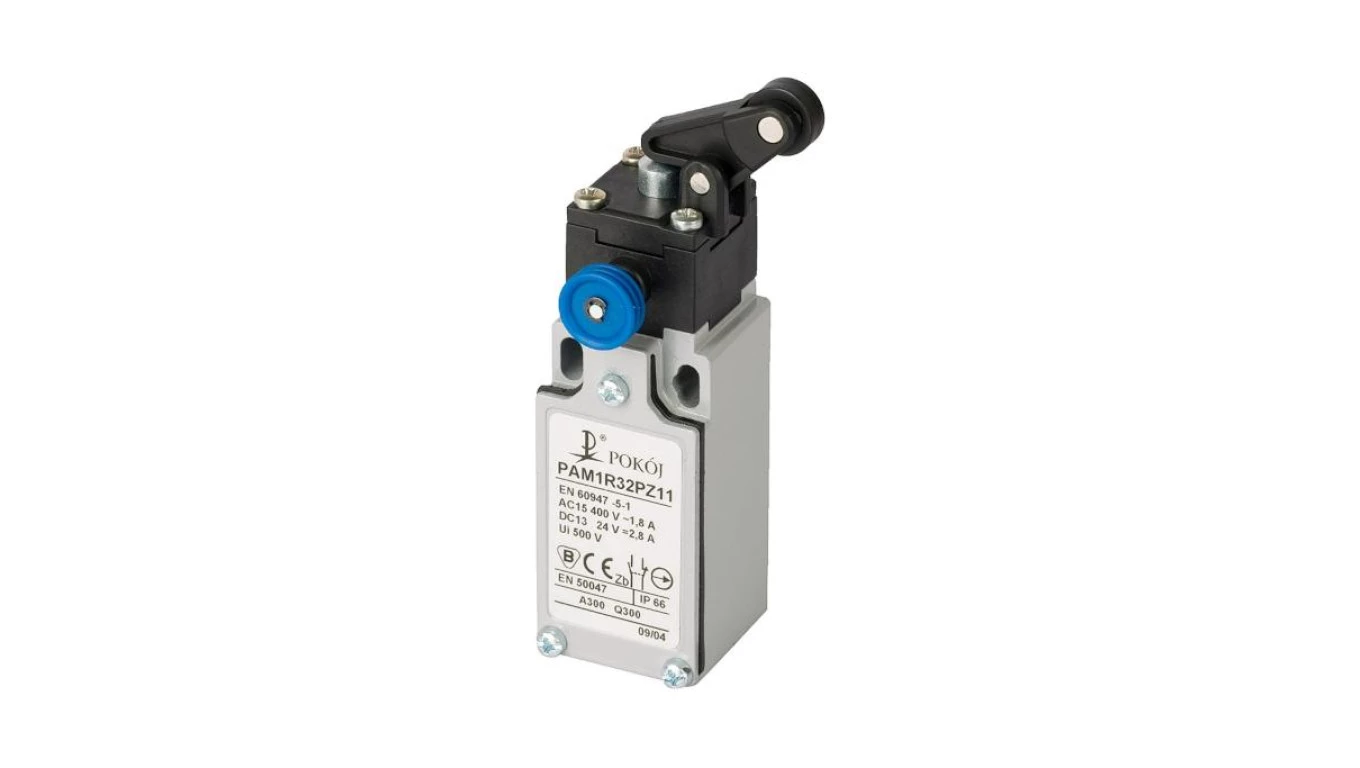 Wyłącznik krańcowy 1R 1Z migowy popychacz stalowy dźwignia pionowa z rolką Ø12,5 z resetem PAM1R32PZ11 A37-4R40