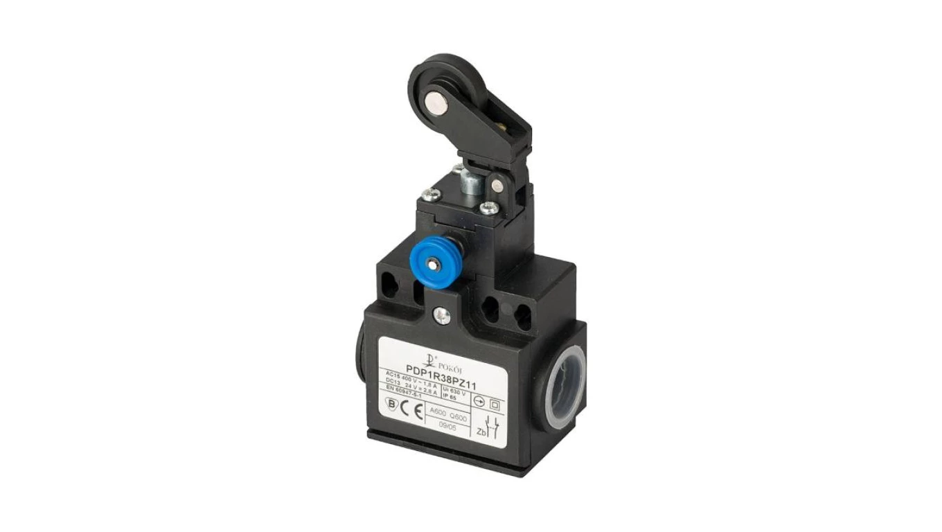 Wyłącznik krańcowy 1R 1Z migowy popychacz stalowy i dźwignia z rolką z tworzywa Ø22 z resetem PDP1R38PZ11 A37-6R50