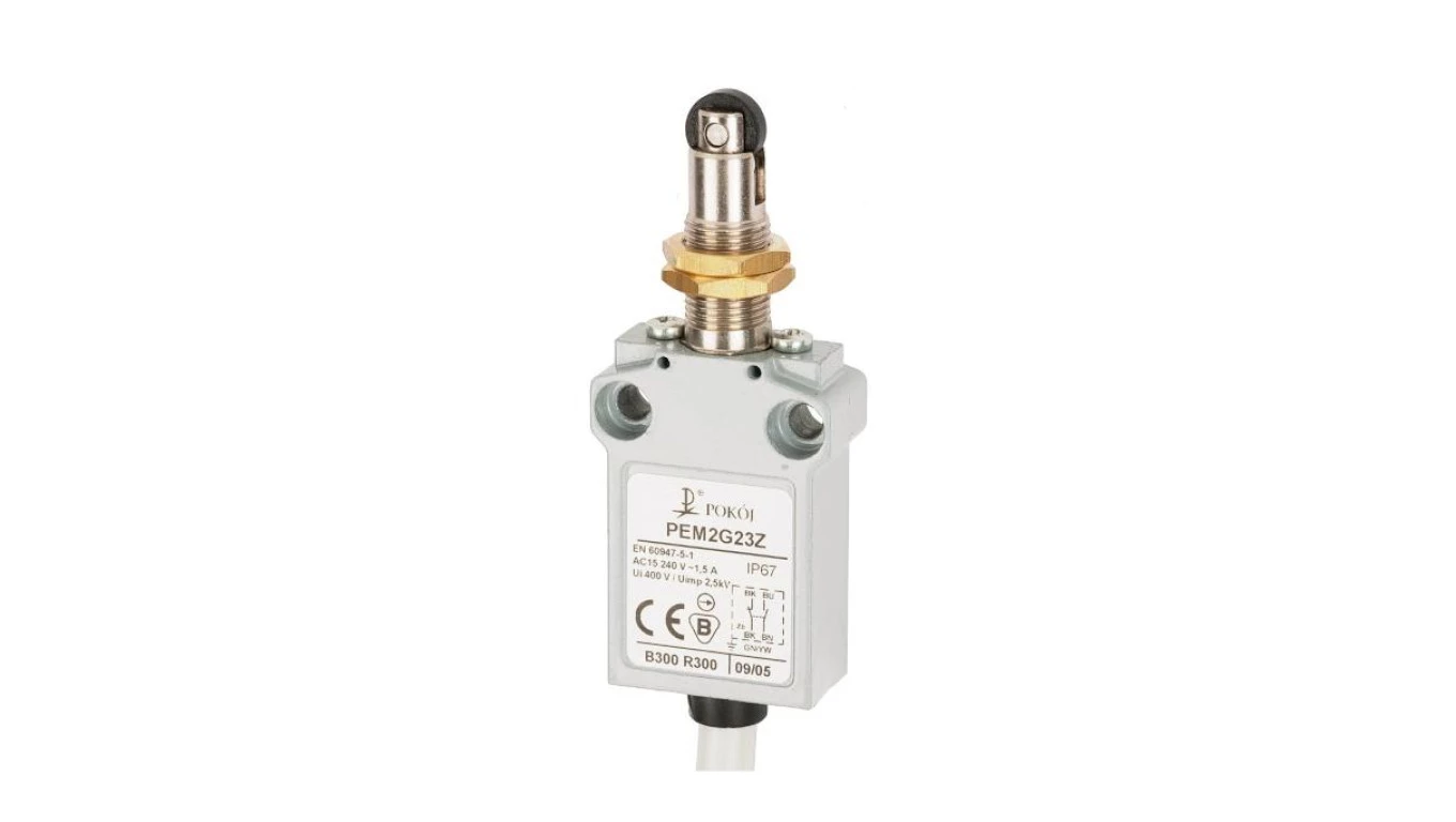Wyłącznik krańcowy 1R 1Z migowy rolka z tworzywa Ø10,7 z mocowaniem za gwintowaną głowicę PEM2G23Z A37-B89Z