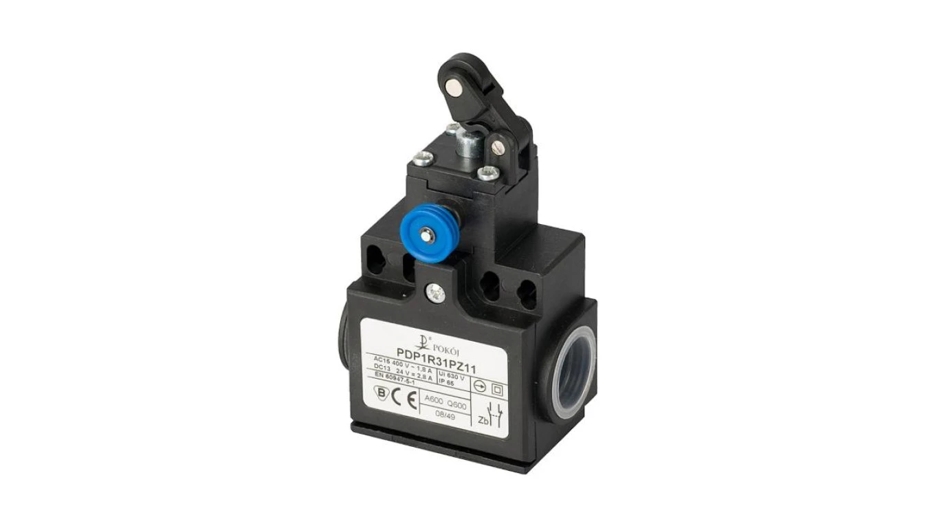 Wyłącznik krańcowy 2R wolnoprzełączający popychacz stalowy i dźwignia pozioma z rolką z tworzywa Ø12,5 z resetem PDP1R31PW02 A37