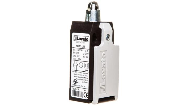Wyłącznik krańcowy trzpień wciskany z rolką, rolka metalowa, obudowa z tworzywa,1R 1Z zestyki wolnoprzełączające KBB2L11