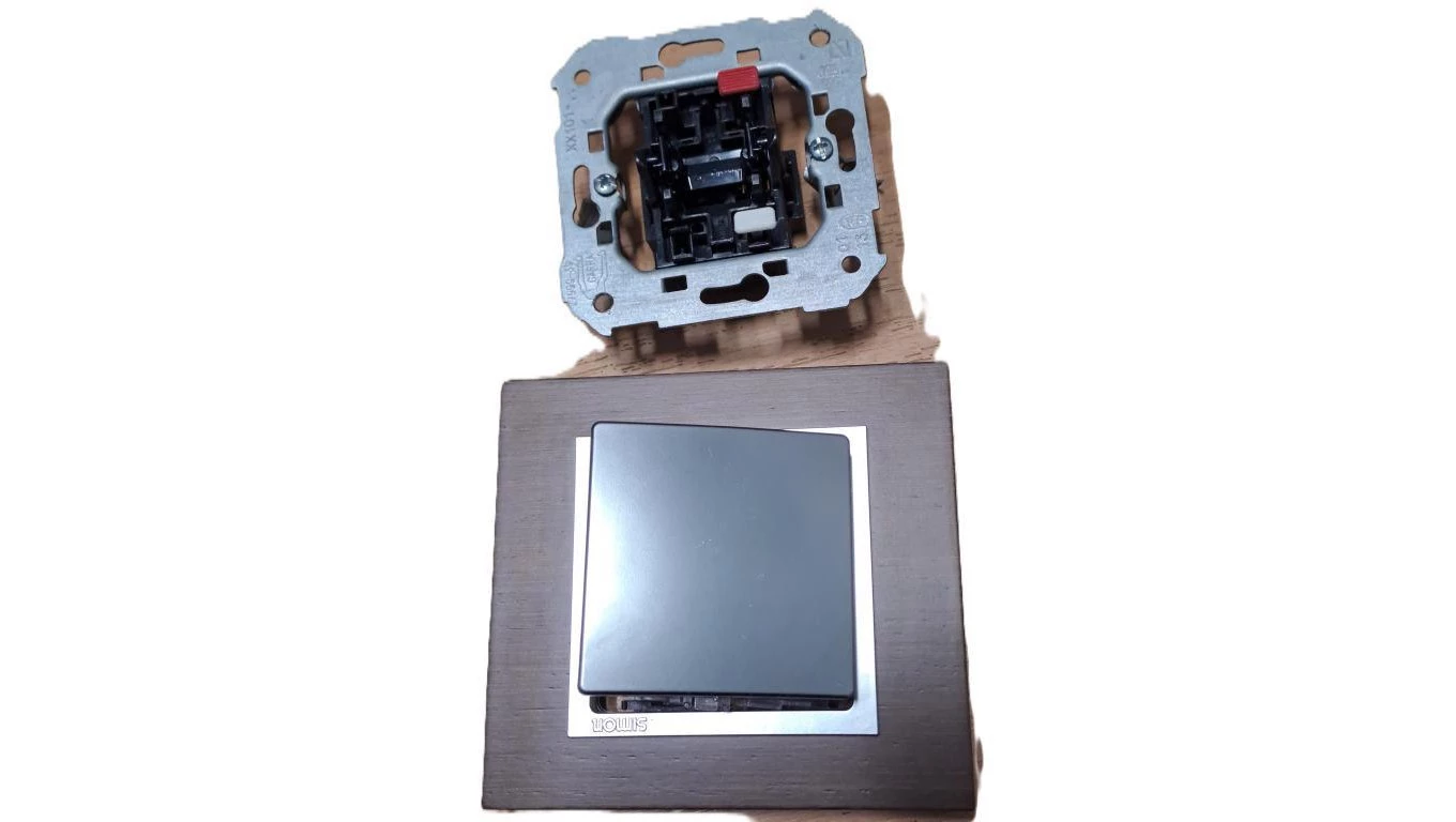 Wyłącznik simon 82 drewno-wenge z ramką seria nature klawisz aluminium+ mechanizm
