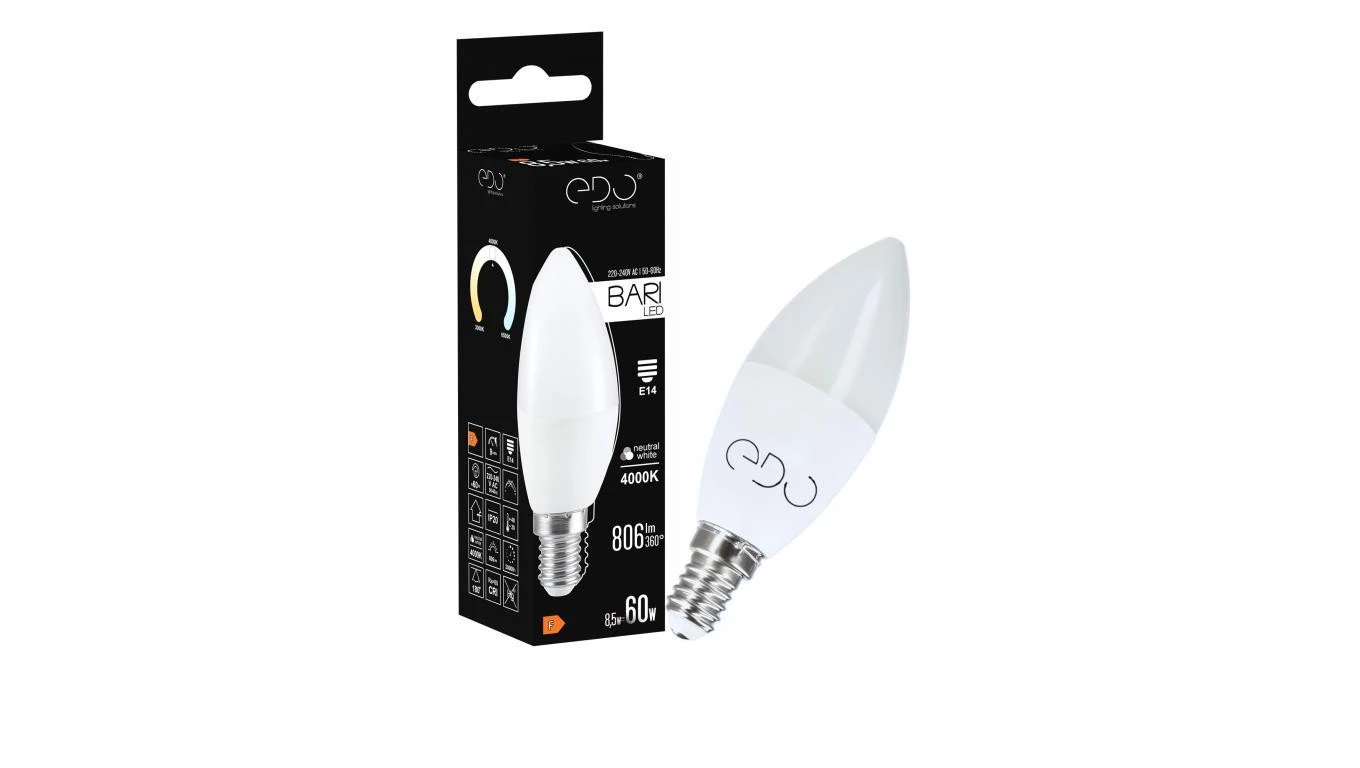 Żarówka BARI LED 8,5W NW świeczka, E14, 4000K, 806lm, 220-240V EDO777666 EDO
