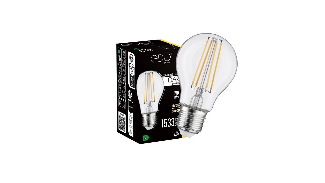 Żarówka dekoracyjna DARI LED Filament 7,3W, E27, 3000K, 1533lm, 230V, CLEAR A60, EDO777711 EDO