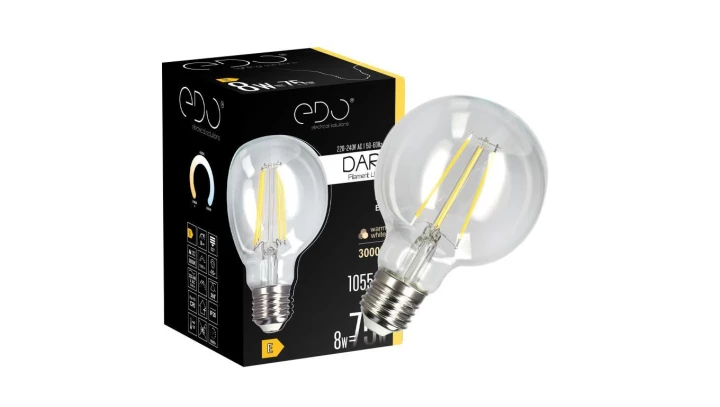 Żarówka dekoracyjna DARI LED Filament 8W, E27, 3000K, 1055lm, 230V, CLEAR G80, EDO777633 EDO